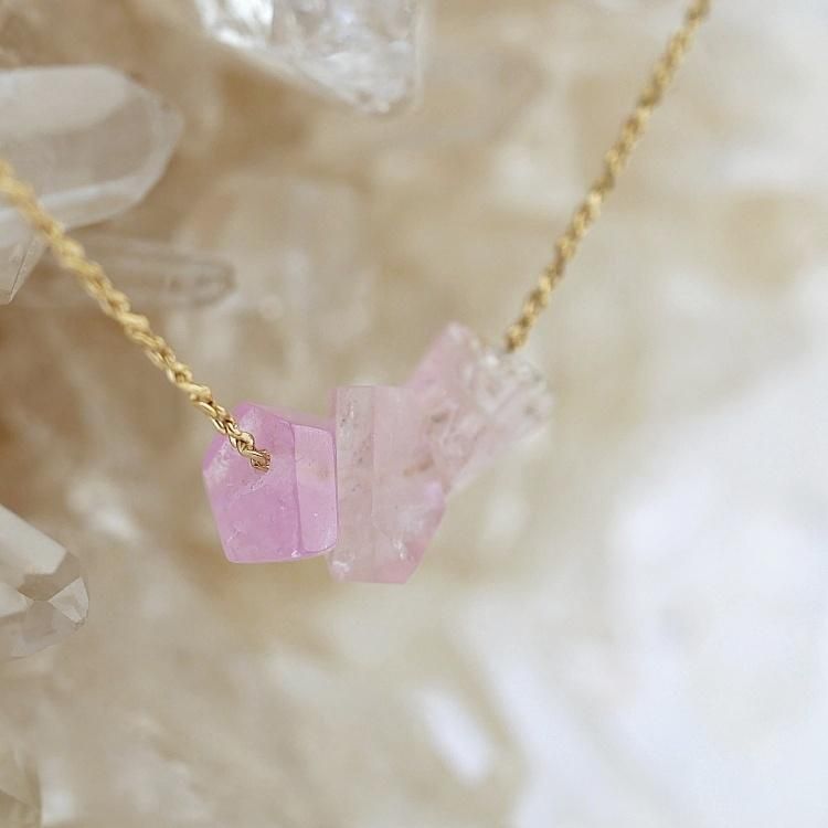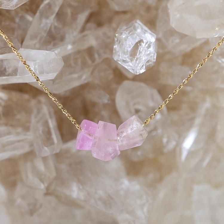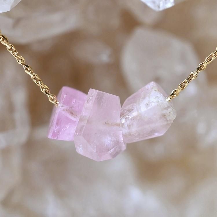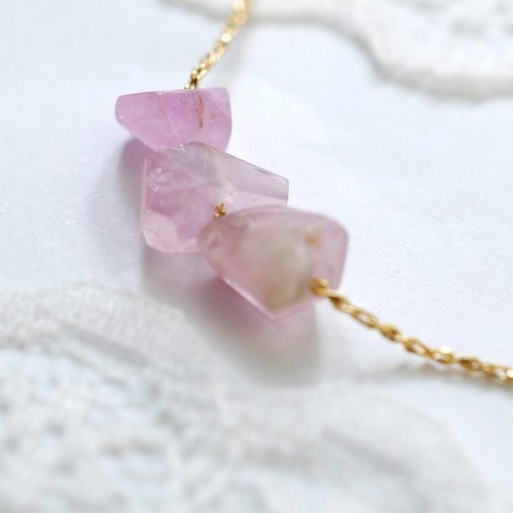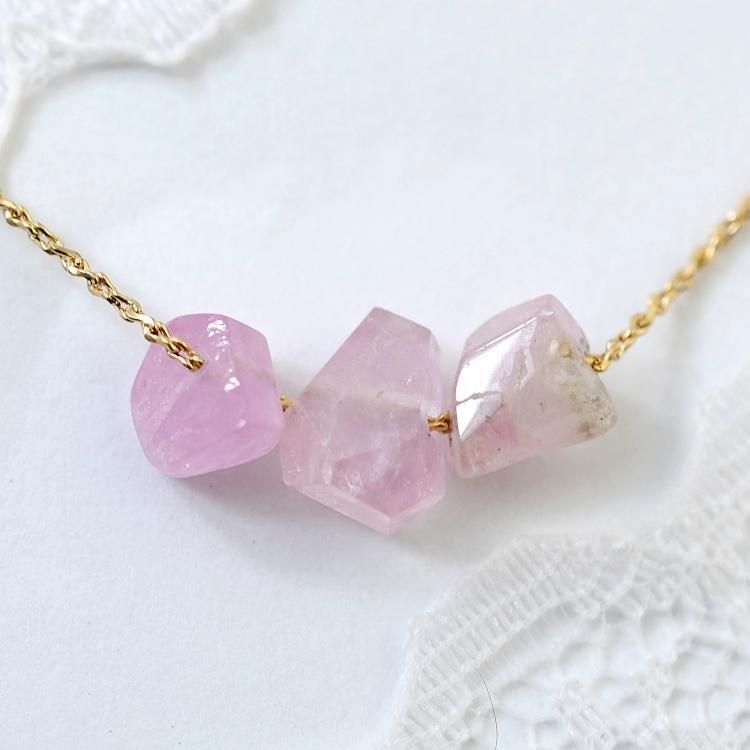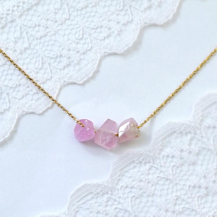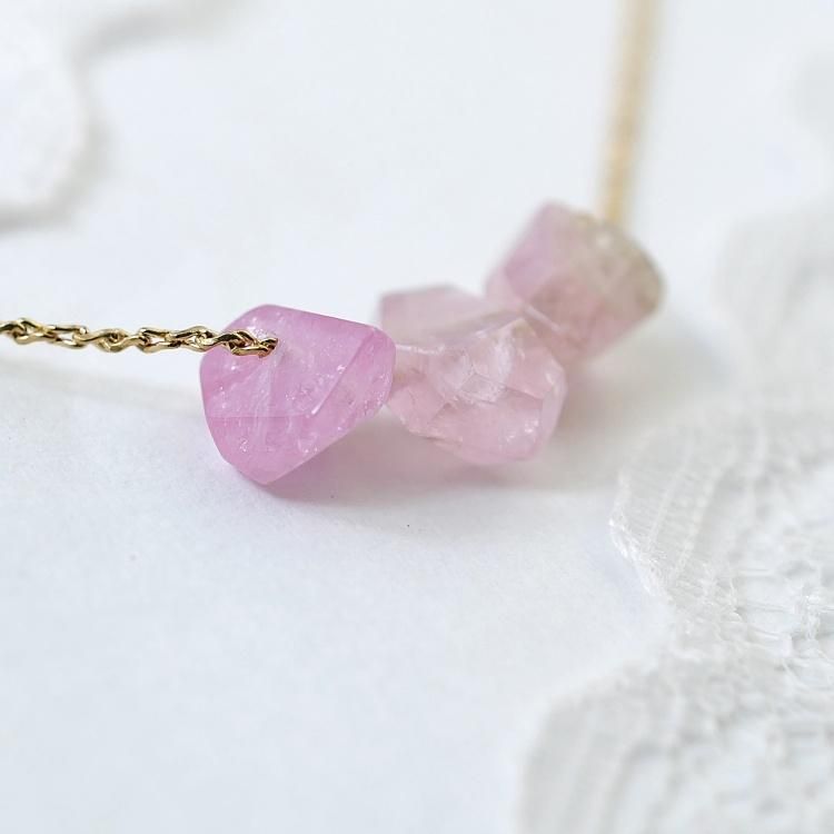 祈ららオリジナル・ピンクトルマリン幅4〜5ミリタンブルカット3粒ネックレスAA〜AAA