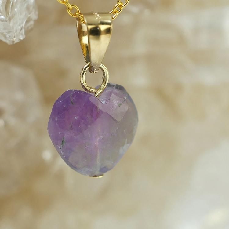 フローライトのハート型ビーズを、ペンダントトップに仕立てました。