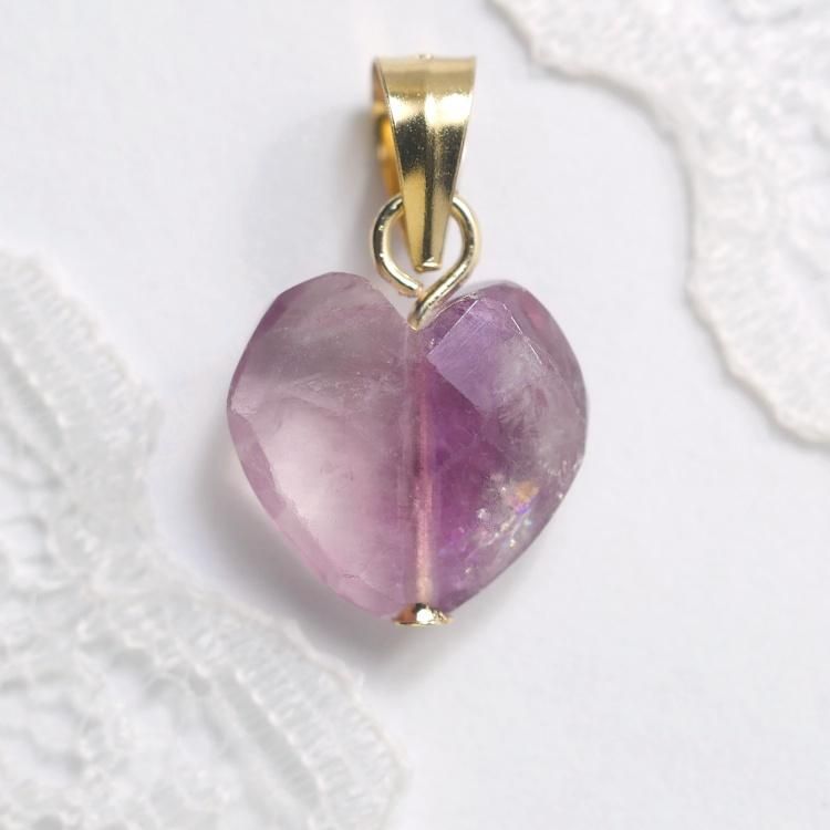 祈ららオリジナル・パープルフローライトペンダントトップ8.5ミリハートAA〜AAA2
