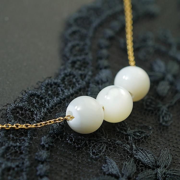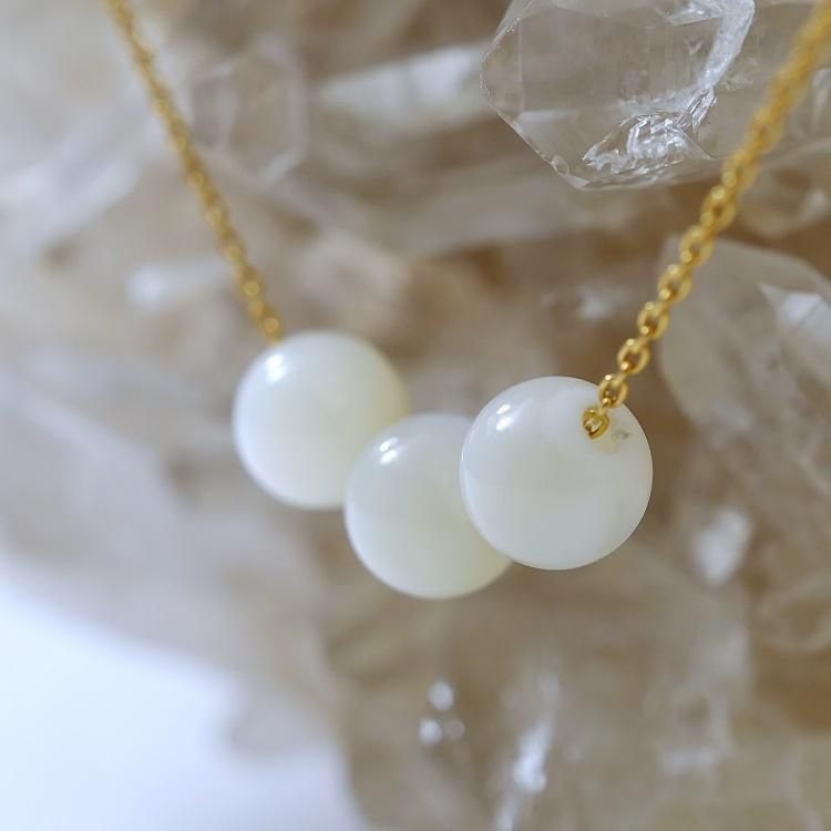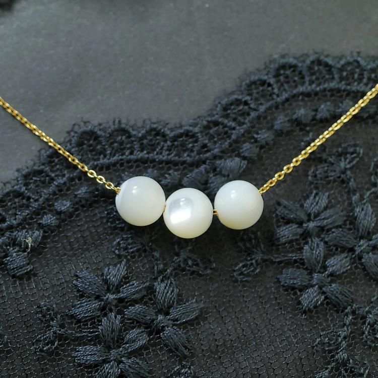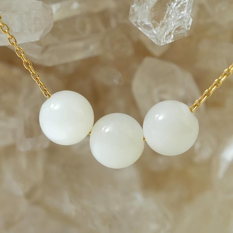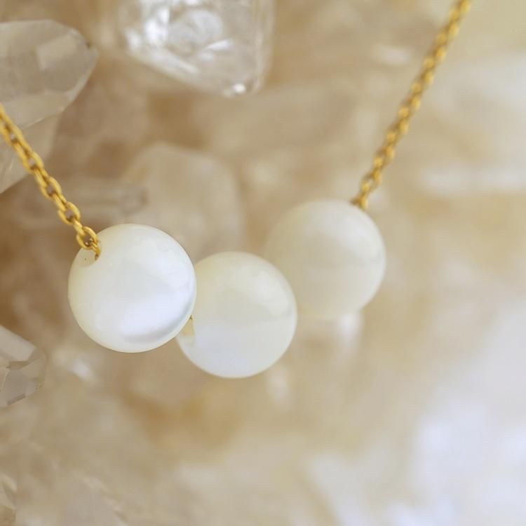 マザー・オブ・パールは、一部が平らになるビーズが、他の石よりも多めに混じります。