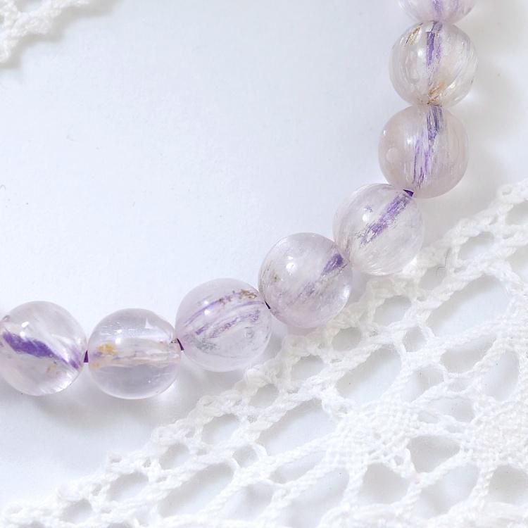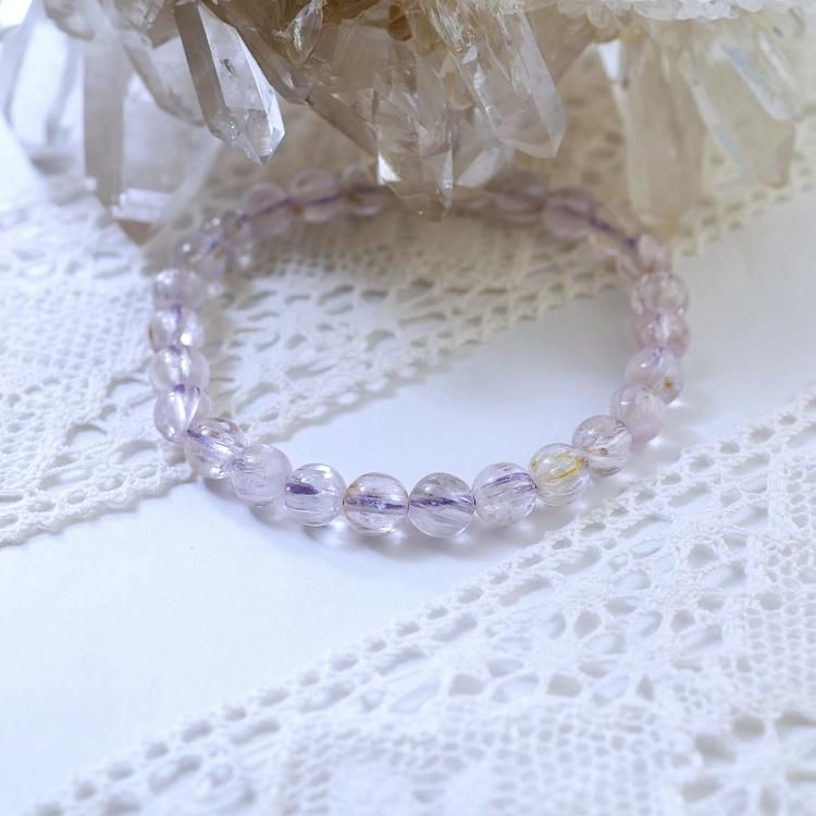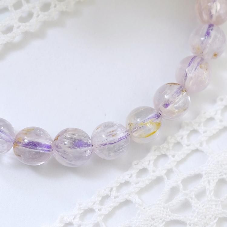 透明なクンツァイトの、大変きれいな7ミリ玉ブレスレットです。