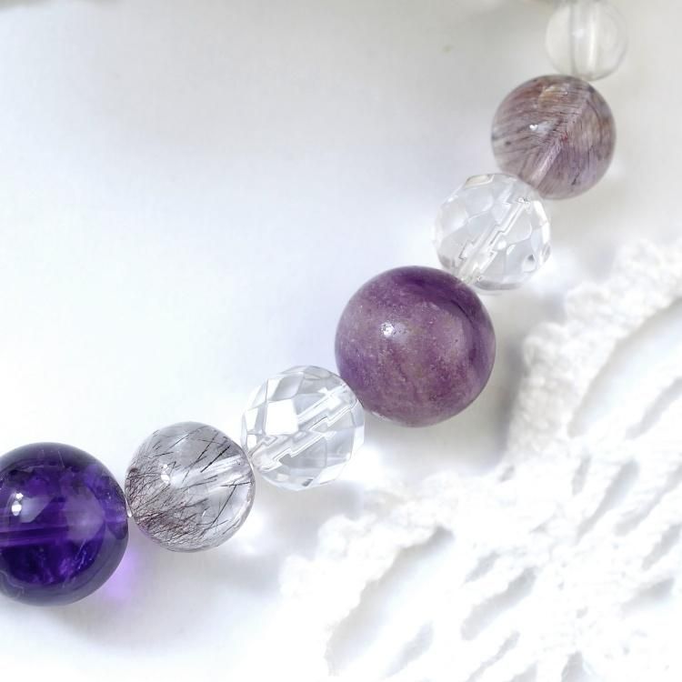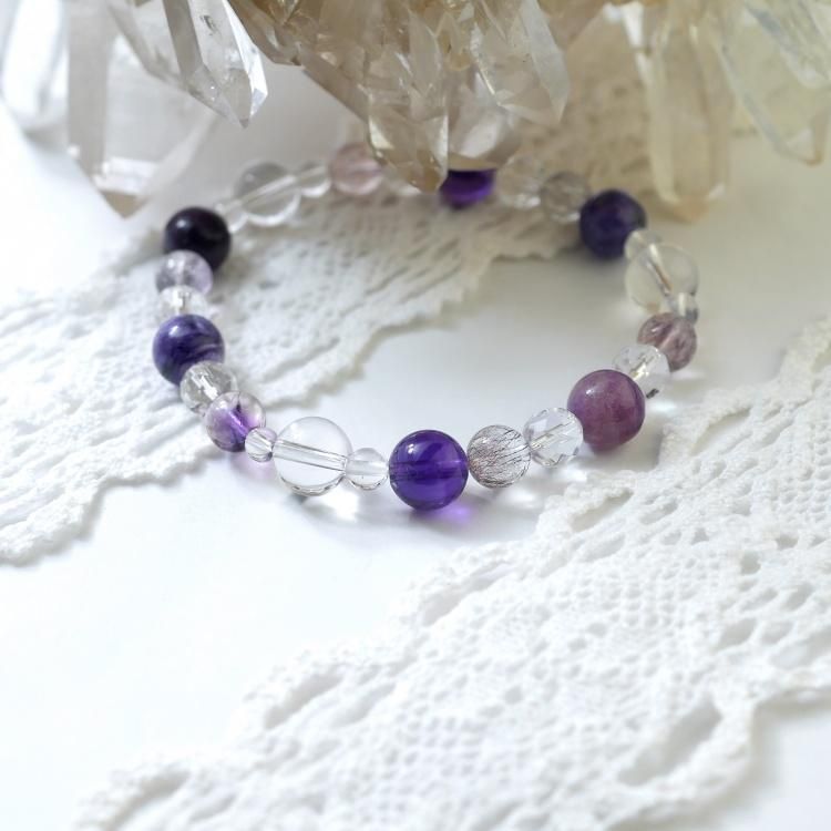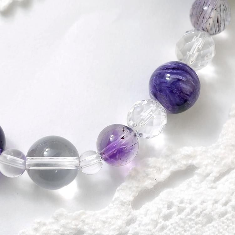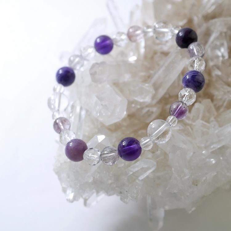スーパーセブン、チャロアイト、アメジスト、パープルフローライトはどれも心を癒しながら進歩成長を助け、変化を楽しみ受け入れられるようにしてくれます。