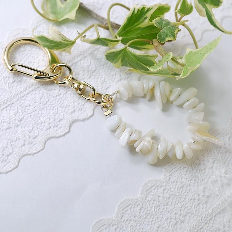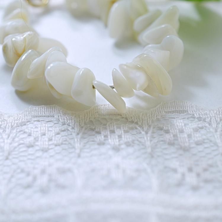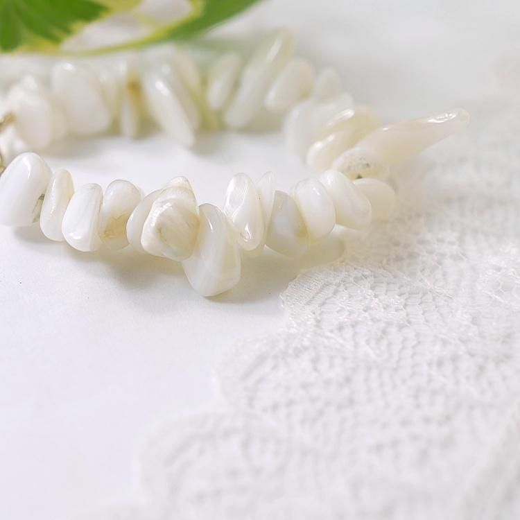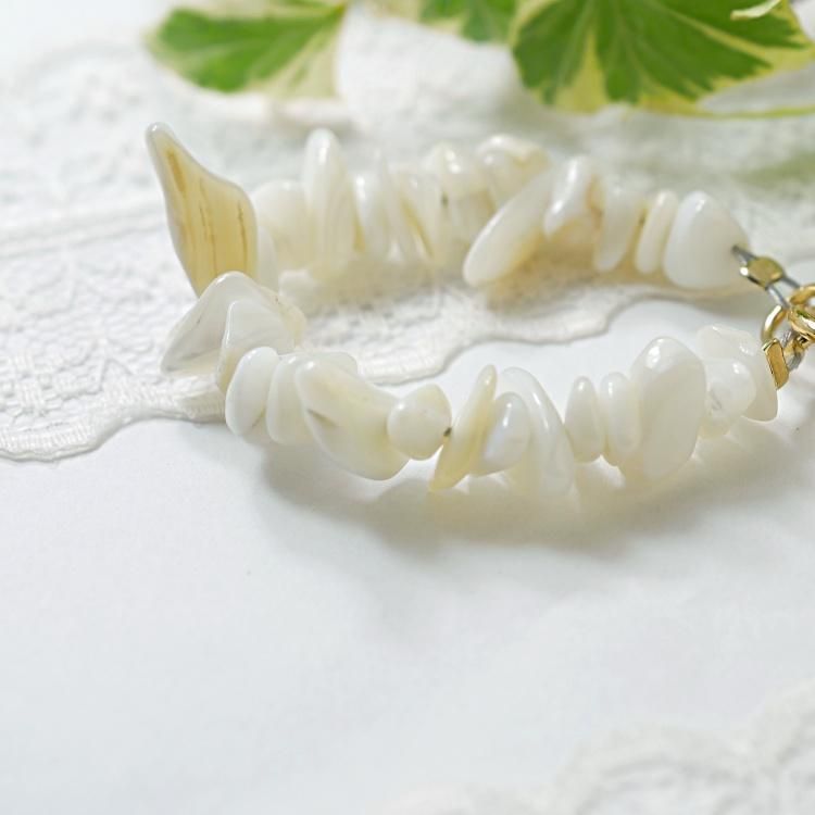マザー・オブ・パールは、一部が平らになるビーズが、他の石よりも多めに混じります。