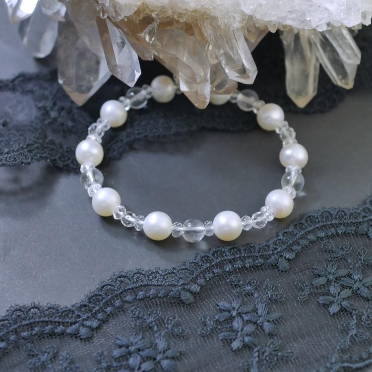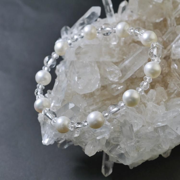水晶がさわやかさを演出しながら、淡水パールのエネルギーを拡大してくれています。