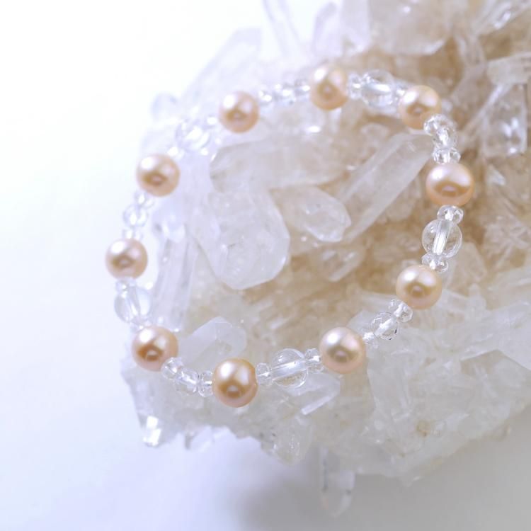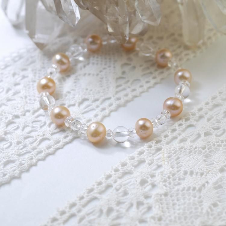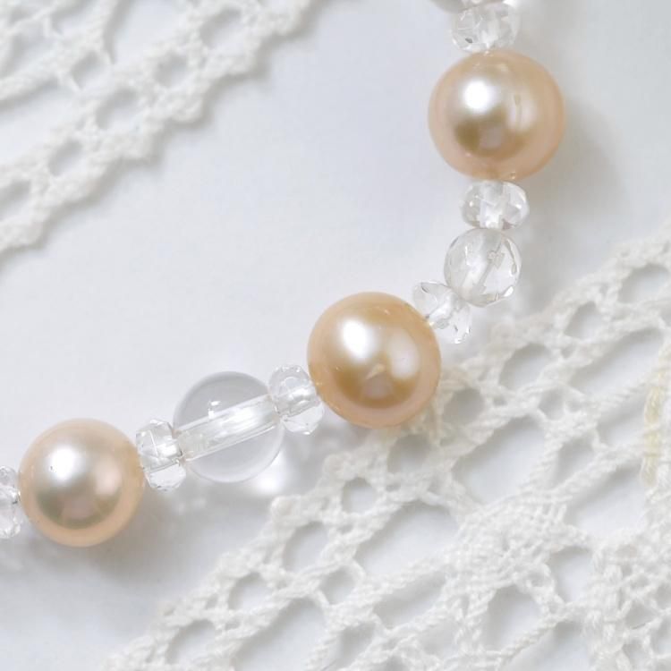 水晶がさわやかさを演出しながら、淡水パールのエネルギーを拡大してくれています。
