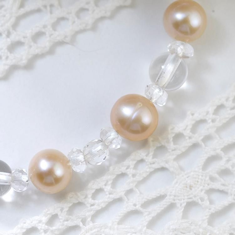 祈ららオリジナル・淡水パールオレンジと水晶のデザインブレスレット14.9センチ