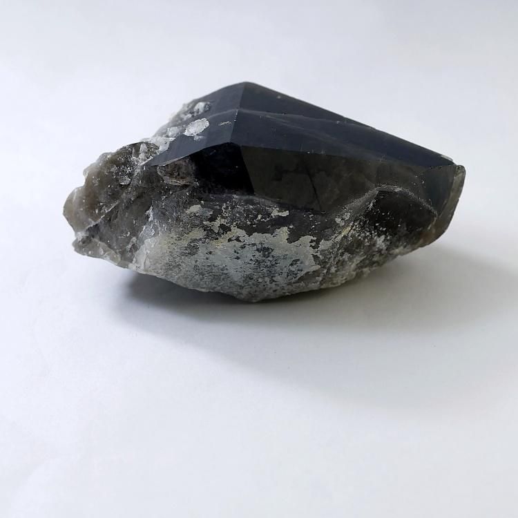 黒い水晶で、スモーキークォーツがこげ茶色で透明感が強いのに対し、モリオンは不透明で真っ黒です。
