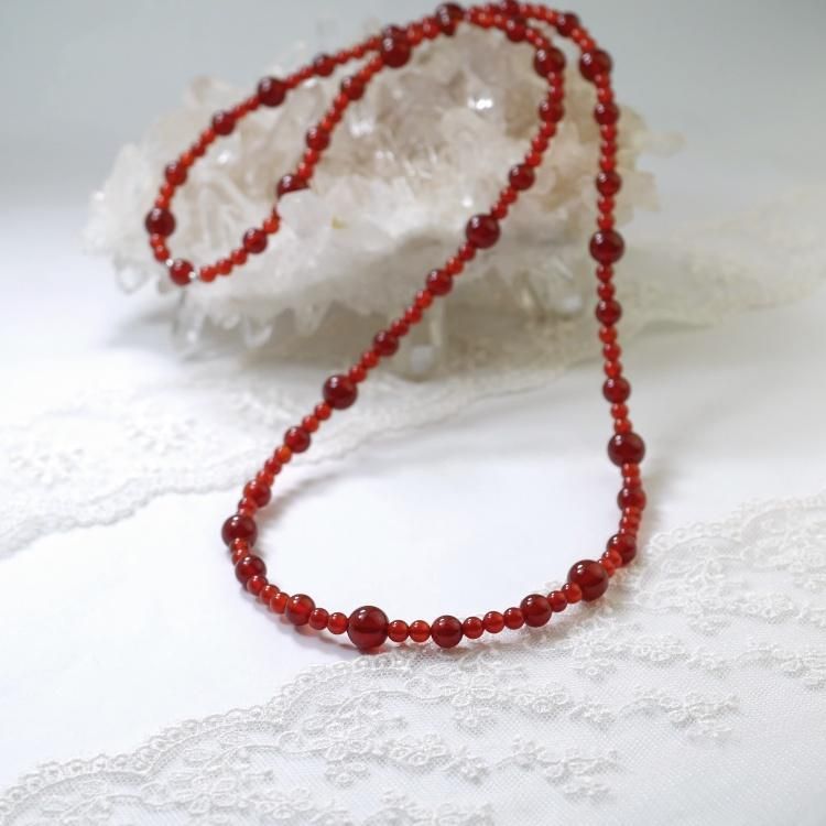 カルセドニーやアゲート(めのう)の赤いものですが、オレンジアゲートを加熱処理したものが多くなっています。